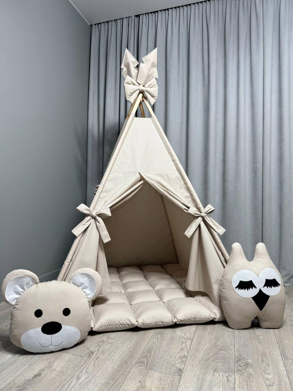Вігвам дитячий Бежевий БОНБОН Повний комплект, вігвам для дівчинки, дитячий вігвам, вігвам для хлопчика, вігвам для дітей