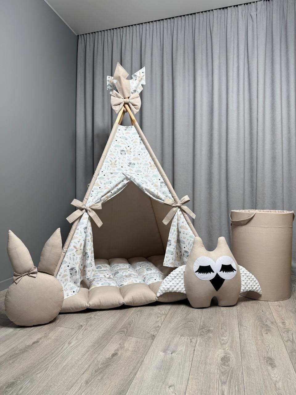 Вігвам для дітей Совенята 3 БОНБОН з Кошиком Повний комплект, вігвам для хлопчика, вігвам для дівчинки, дитячий вігвам, вігвам